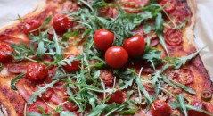 Beliebte Kombis sind Schinken + Rucola, kleine Tomaten + Oliven, Spinat + Mais, Salami + Pilze … Und obendrauf gehört natürlich Käse, z. B. Parmesan, Pecorino oder auch Mozzarella geben deiner Pizza die typisch italienische Note. Den Rucula und noch mehr Pecorino am besten erst auf die Pizza legen, wenn Du sie aus dem Ofen geholt hast.